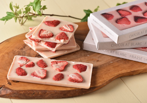 【あすかルビーチョコレート】明日香村産の「あすかルビー」いちごを贅沢に使用。ジャージー牛のミルクで作ったこだわりのホワイトチョコは後味すっきり。フレッシュな味わいをお楽しみください。
